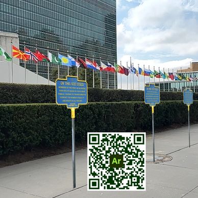 There are three locations of augmented reality markers around the UN complex. You can view them using the links or QR codes below on your phone or tablet, including through a web browser.